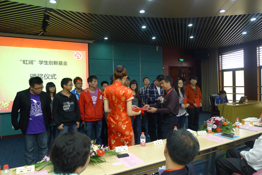 董事長(zhǎng)林善平為上海理工大學(xué)獲獎(jiǎng)學(xué)生頒發(fā)虹潤(rùn)助學(xué)獎(jiǎng)金