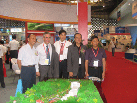 虹潤公司的展臺以中國傳統(tǒng)元素為主導(dǎo)設(shè)計風(fēng)格,在展臺的頂端,一副中國書法卷軸畫緩緩展開,“虹潤儀表”4個宋體大字在祥云的襯托下顯的雄渾有力。虹潤不怕遠征難的巨幅宣傳畫位于虹潤公司前臺的正上方,畫中蒼鷹在云端翱翔,虹潤員工團結(jié)一心,攜手并肩,朝著既定的目標(biāo)勇攀高峰,奮勇前進。在展臺上虹潤公司還展示了按照順昌公司1:220比例制作的縮微全景沙盤。