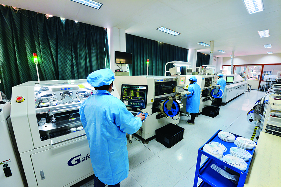 2020年的流金八月,驕陽似火,虹潤公司智能儀表生產(chǎn)線改造擴(kuò)建項(xiàng)目施工現(xiàn)場(chǎng),施工人員正忙著安裝各類基建設(shè)備。與此同時(shí),相距不到百米的公司智能制造工廠內(nèi),自動(dòng)點(diǎn)焊機(jī)器人在不停地運(yùn)轉(zhuǎn),一片片電路板在全自動(dòng)貼片機(jī)上不斷地向前傳送……生產(chǎn)車間內(nèi)亦是一片繁忙景象。